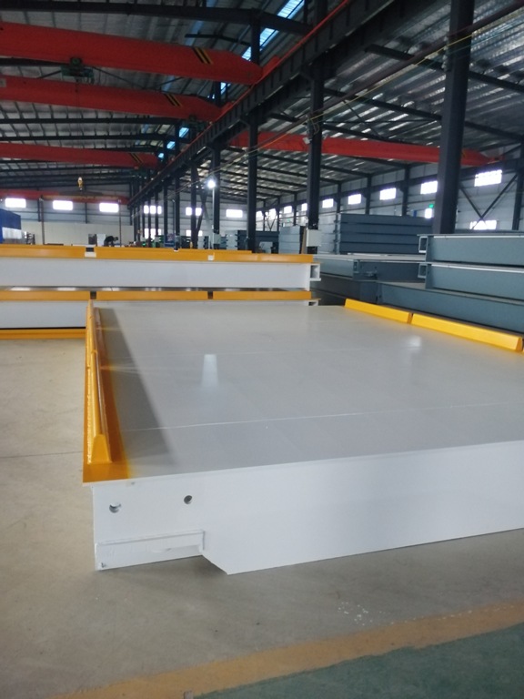 汽車衡面板采用自動(dòng)埋弧焊機(jī)拼焊,采用全自動(dòng)多頭氣體保護(hù)焊機(jī)進(jìn)行滿焊,秤體端板經(jīng)過(guò)技術(shù)人員刻苦公關(guān)采用平焊焊接,避免立焊焊接的人為因素,確保焊接質(zhì)量。具備專用的預(yù)反拱設(shè)備和工藝規(guī)程保證焊接質(zhì)量。
